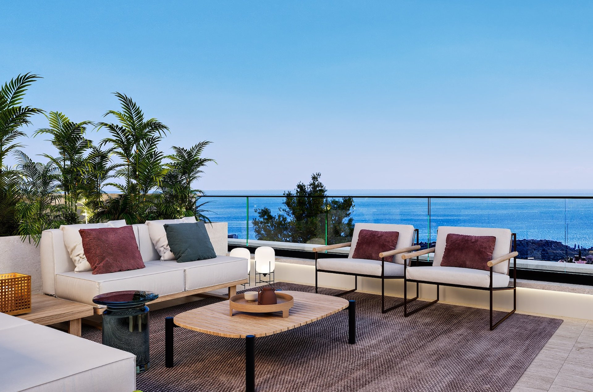 The upper floor consists of a large size bedroom and access to the roof garden where is the perfect place to enjoy the most spectacular mountain view and sea view.